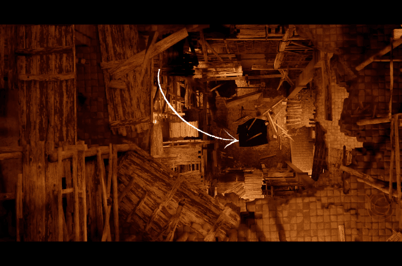 Spara a tavola di legno quello tiene in mano il campanello, poi il campana cadrà a terra, rompendolo nel processo e il percorso verso il seminterrato sarà ora aperto.