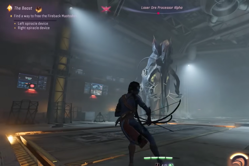 L’obiettivo di So’lek non è uccidere il mastodonte, ma liberarlo. Ciò significa che dovrai stare lontano dalle sue enormi zanne e attirarlo a sfondare i pilastri di supporto. Questo stordisce la bestia abbastanza a lungo da permetterti di distruggere il macchinario che la controlla.