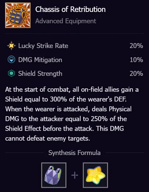 Quel meccanico è esattamente il motivo per cui è il miglior pilota per Chassis of Retribution (IL “Durian” oggetto scudo avanzato). Il telaio della punizione riflette solo i danni quando chi lo indossa viene colpito, e il riflesso scaturisce dallo Scudo di chi lo indossa. Gli scudi degli altri personaggi non contano; conta solo l’unità che indossa il telaio. Le corse comunitarie mostrano questo accumulo tre Chassis of Retribution su un’unità consente ai nemici di uccidersi letteralmente attaccando e provocando enormi danni.