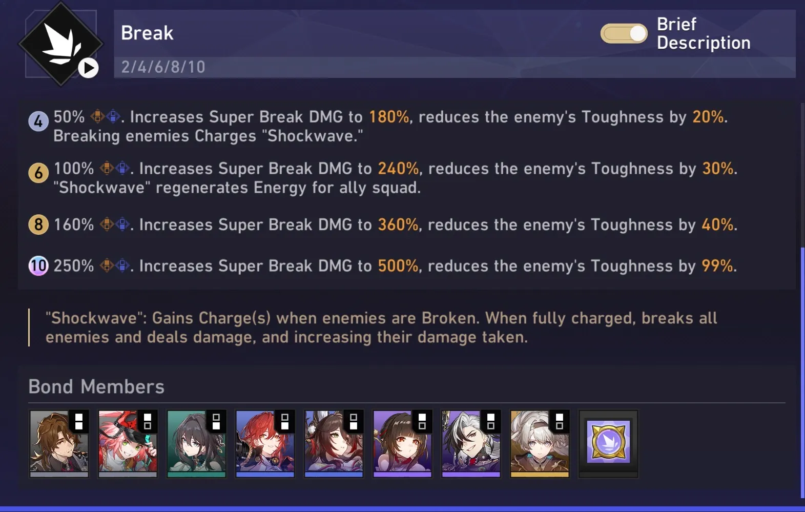 Obiettivo obbligazioni: 3 Ranger Galattico + 4/6 Rottura. Non forzare il 6-Break. I potenziamenti forniti dai Galaxy Rangers superano di gran lunga quelli dei Break Bond stessi.