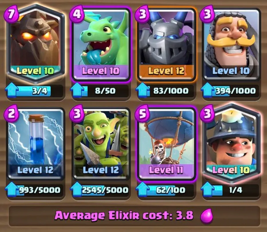 Questa è una carta decente considerando quanto sia facile da giocare. L’aspetto più importante di questo mazzo è la velocità. Le carte utilizzate in questo mazzo, insieme al loro costo in elisir, sono elencate di seguito: