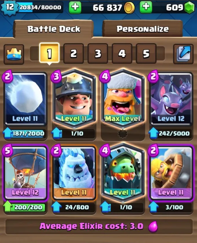 Questo è il mazzo più bilanciato che può funzionare bene in quasi tutte le partite. Ha tutto ciò di cui hai bisogno, dall’attacco alla difesa al supporto. Le carte di questo mazzo sono state mostrate di seguito, insieme al loro costo in elisir: