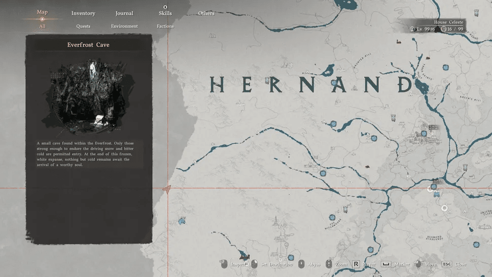Questo ha una deviazione deliberata incorporata nel percorso. Viaggia verso la regione dell’Everfrost e segui il sentiero lungo la riva del fiume in direzione ovest dell’Istituto Scholasta. Alla fine attiverai un avviso di confine “fine del mondo” che la maggior parte dei giocatori considera un vicolo cieco. Ignoralo. Cerca terreno scalabile nelle vicinanze e scala verso l’alto lungo la superficie rocciosa. L’ingresso alla Grotta dell’Etergelo si trova in alto. Attraversa l’interno della caverna e raccogli i Guanti a Piastre delle Ombre dal punto di bottino all’interno.