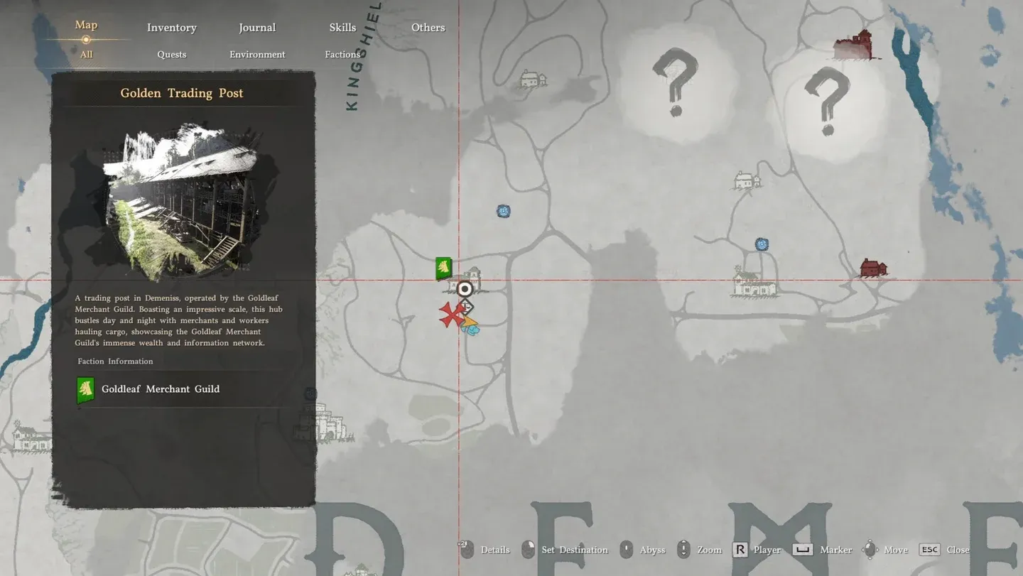 Dalla posizione degli stivali, dirigiti a nord-est verso la Stonewell Farm, che si trova a nord-ovest della “D” nel testo della mappa di Demeniss. Cerca l’alto edificio che assomiglia ad una piccola torre sul lato occidentale della fattoria. Il baule è all’ultimo piano. Puoi raggiungerlo in due modi: sali la scala interna o salta sul piccolo balcone dall’edificio adiacente.