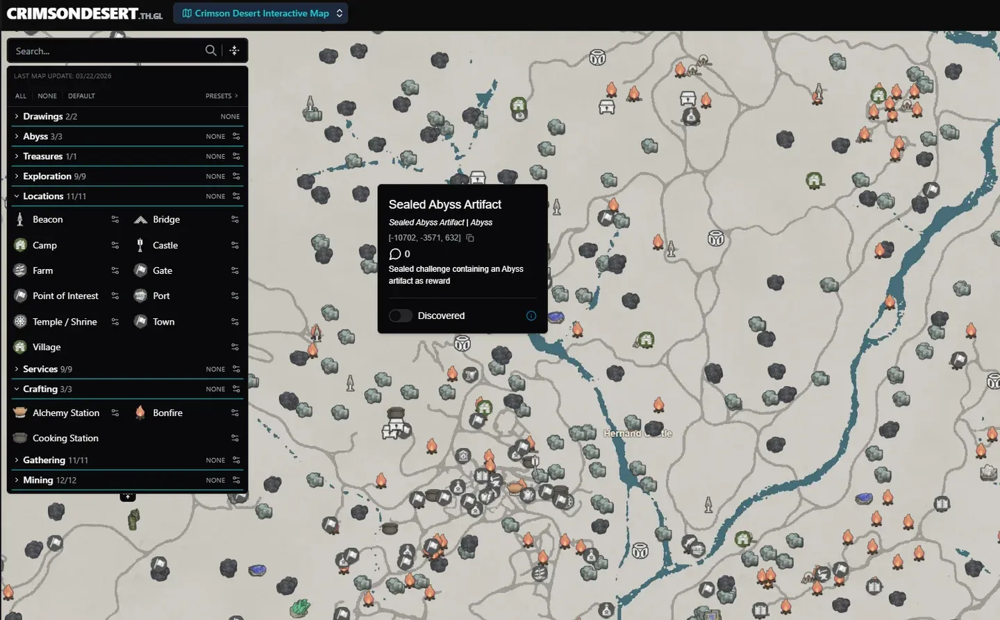 Hernand ha dell’epidoto sparso in giro, ma la diffusione rende inefficiente coltivarlo lì. Tratta tutti i nodi Hernand come pickup opportunistici piuttosto che come un percorso dedicato.