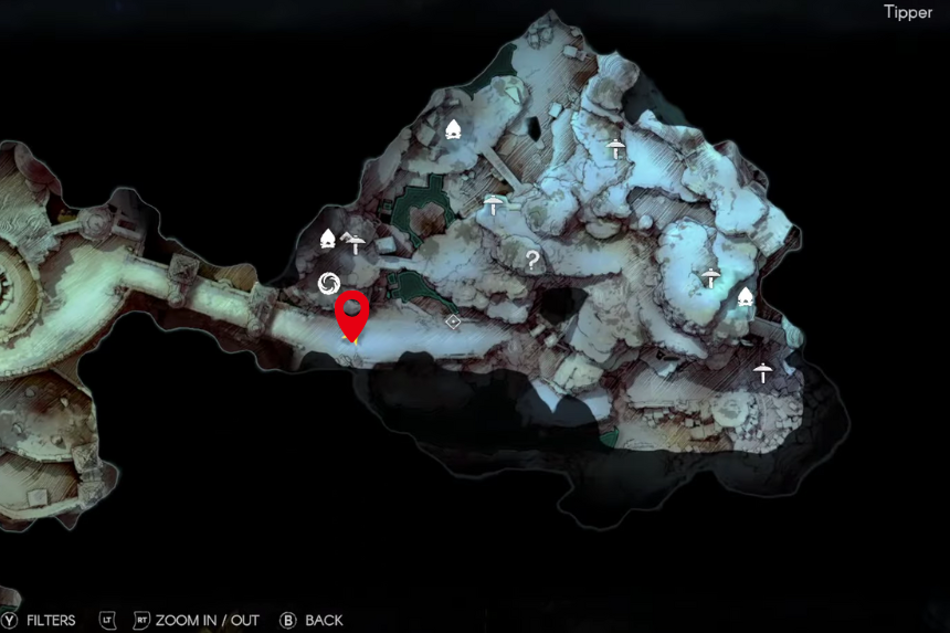 Rompi la roccia per trovare una radice scalabile e saccheggia l’area. Quindi nuota a nord-ovest e sconfiggi i prigionieri squilibrati. Raccogliete il baule e il diario, poi salite sul pilastro principale.