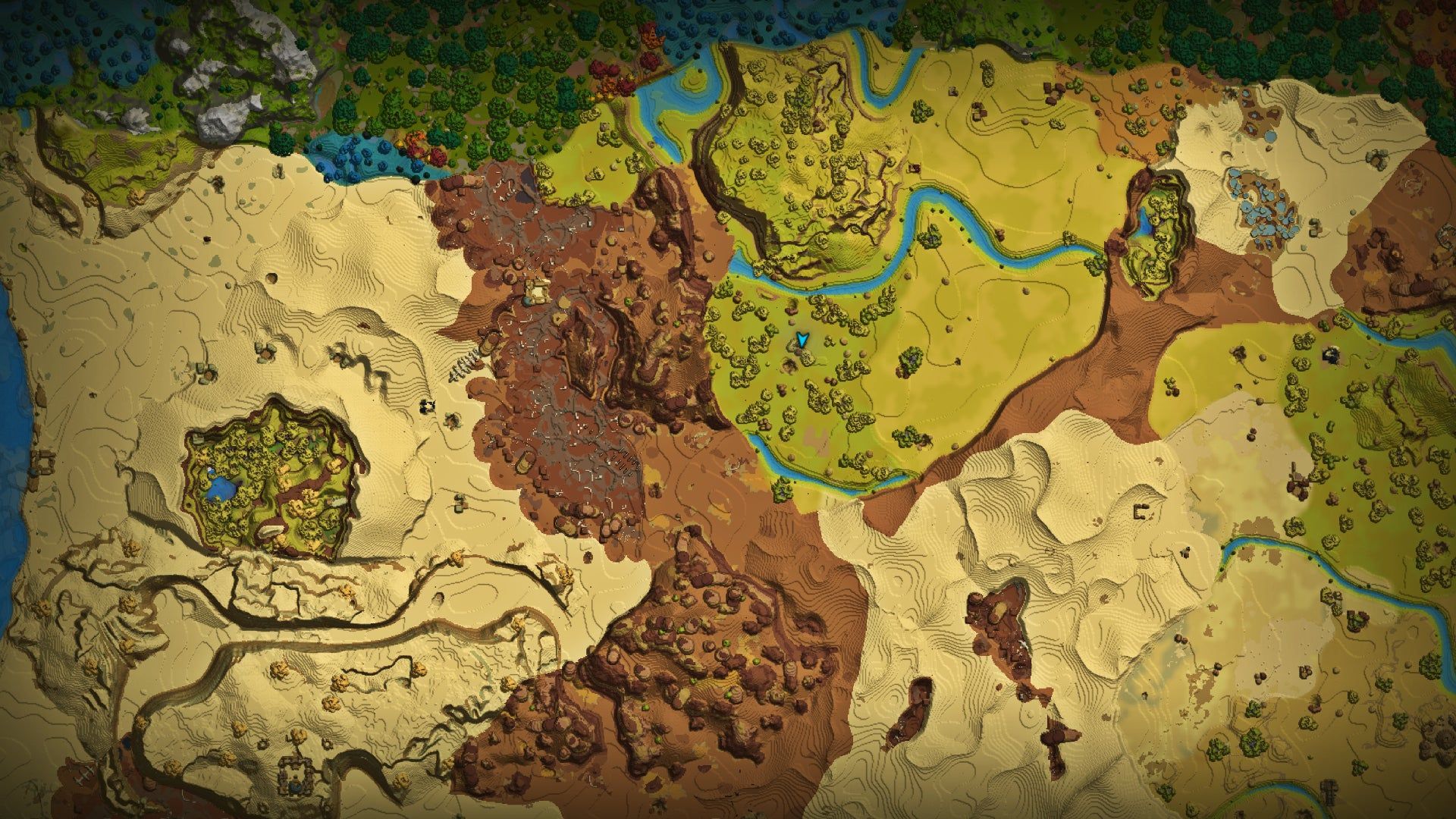 Il tuo viaggio nel Torio inizia con la ricerca del bioma desertico di Howling Sands. Apri la mappa e scansiona i bordi del territorio esplorato per individuare regioni sabbiose e giallastre. Queste aree desertiche appaiono come macchie di colore distinte che contrastano nettamente con le foreste verdi della tua zona di partenza.