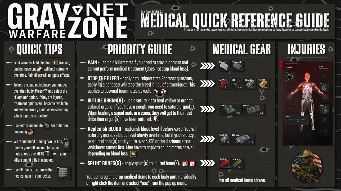 Lamang non perdona i giocatori negligenti, e da nessuna parte ciò è più ovvio che nel sistema medico. A differenza degli sparatutto in cui un singolo kit medico fa tabula rasa, Grey Zone Warfare tiene traccia del volume del sangue, dell’integrità degli organi e delle fratture ossee in modo indipendente. Una grave emorragia non trattata per dieci secondi può farti cadere in coma prima ancora di trovare riparo. Capire esattamente cosa significa ciascuna icona di infortunio e quale oggetto la risolve è la differenza tra l’estrazione con il bottino e il respawn a mani vuote.