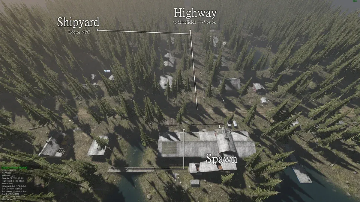 Un commerciante generalista opera nel villaggio, gestendo oggetti vari, cibo, armi e munizioni. La maggior parte delle missioni iniziali di questo commerciante possono essere completate senza lasciare il villaggio, il che vale la pena coltivare a fondo prima di spingersi oltre. Secondo la voce wiki di Road to Vostok Fandom su Village, funziona come il luogo di partenza principale in cui i giocatori si generano per iniziare a esplorare il resto del mondo.