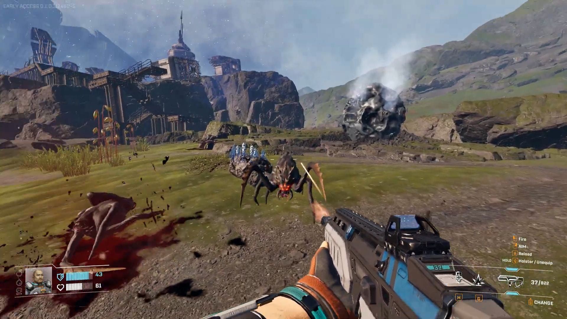 L’avamposto stesso si trova in cima ad una collina prominente ricoperta da enormi escrescenze di spore blu. Queste spore non sono solo decorazioni (infliggono l’effetto dello stato Infezione, che disabilita la rigenerazione del tuo scudo mentre sei vicino a loro).