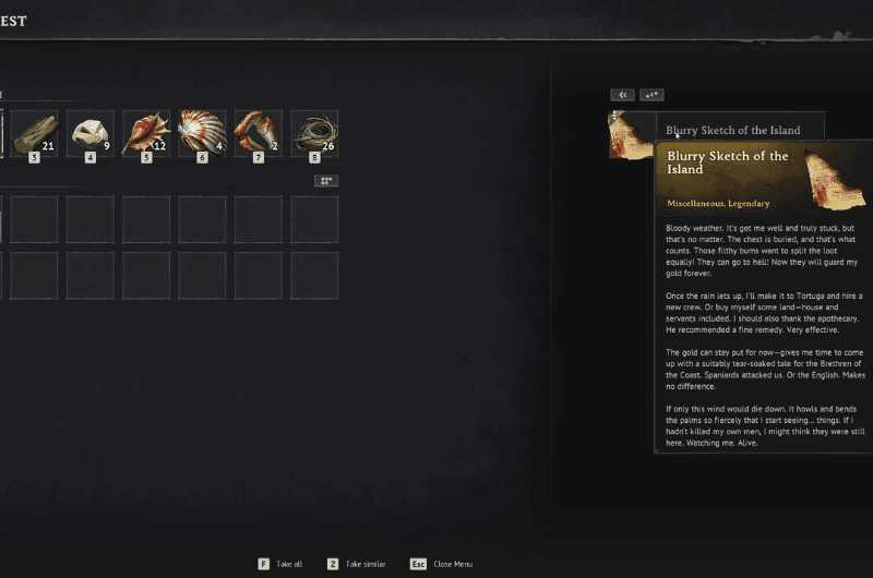 Troverai il Mappa del tesoro all’interno del petto insieme a a Lanterna e un Stoccoche è un buon gioco iniziale spada questo vale 100 danni.