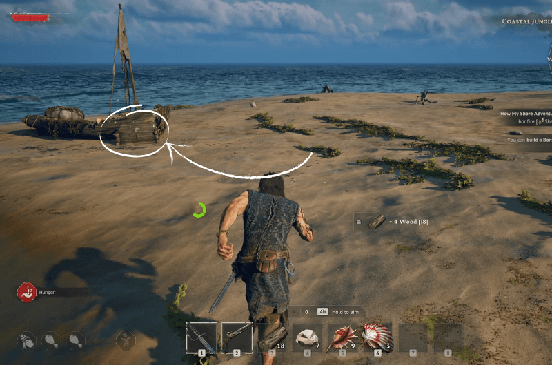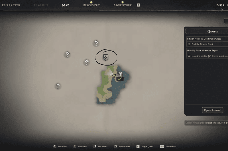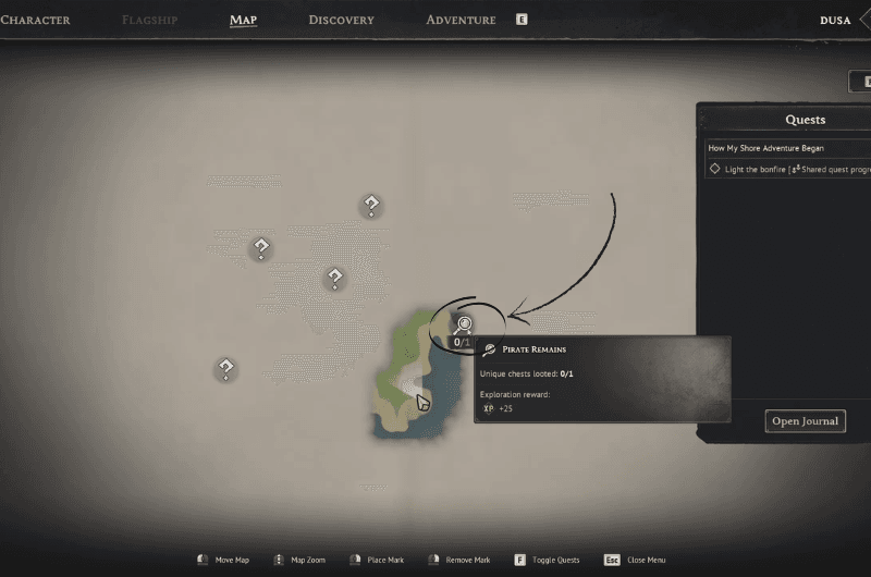 Dirigiti verso la posizione contrassegnata sulla mappa come mostrato nell’immagine sopra, raggiungerai a naufragio – Resti dei pirati. Troverai un Petto vicino al naufragio.