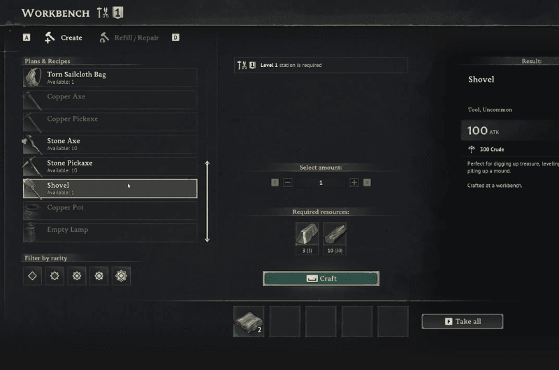 Per creare a Palaavrai bisogno di 2 risorse, ovvero lingotto di rame E legna. Puoi trovare legna in giro sul terra vicino alla spiaggia e all’interno della foresta oppure puoi abbattere alcuni alberi usando a ascia di pietra.