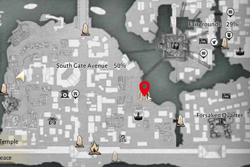 Fatto ciò, teletrasportati al quartiere abbandonato e cammina verso il fiume. Il gioco non mette un indicatore chiaro sulla mappa per questa parte e il tuo inventario può creare un po’ di confusione. Sembra che tu abbia già l’oggetto anche se in realtà non è così.