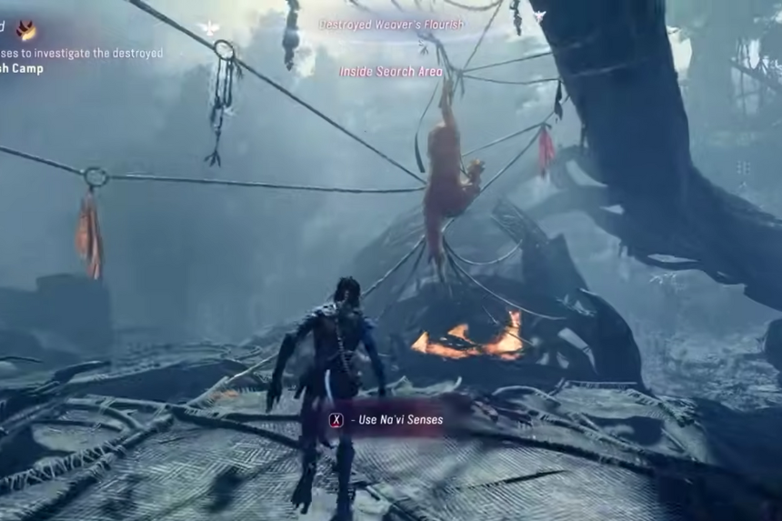 Devi usare i tuoi sensi Na’vi per indagare sul distrutto Campo Fiorente dei Tessitori. Esamina la zona notte, il cadavere di un animale e alcune attrezzature rotte. Quindi segui le indicazioni da dove vedi il fumo. Ci saranno molti nemici nelle vicinanze. Sconfiggili tutti. Da loro saprai che devi visitare il quartier generale della Resistenza.