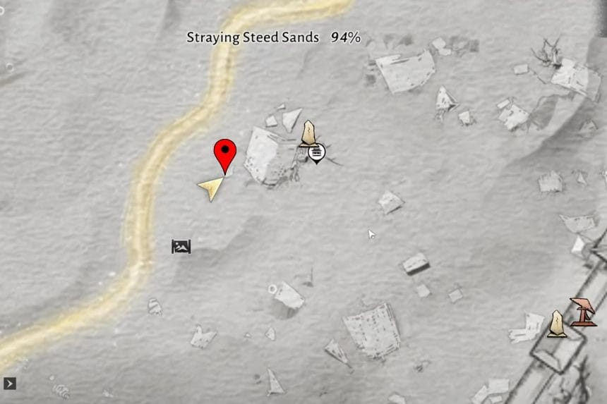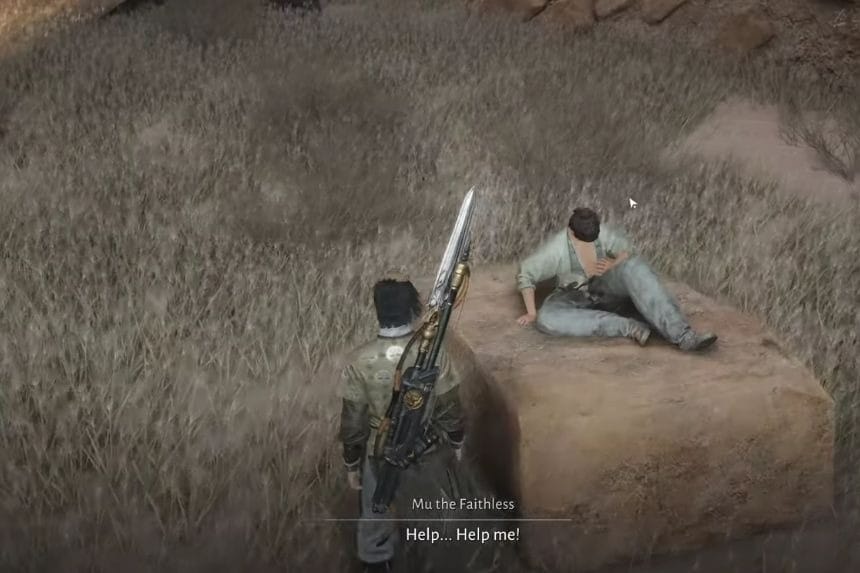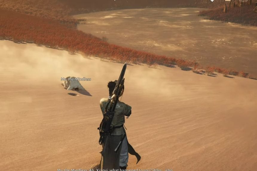 Per iniziare la missione Wandering Tale “A Mirage of Wine”, vai nell’area di Karez a nord del Passo della Porta di Giada nella regione di Hexi. Da lì, viaggia verso sud-ovest finché non trovi Mu the Heartless sdraiato sulla sabbia. Parla con lui e questo avvierà la ricerca.
