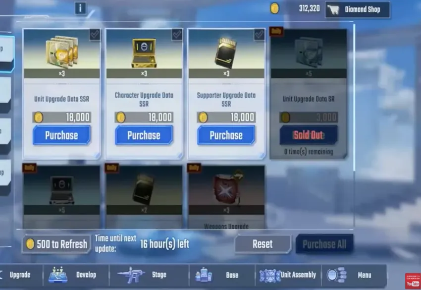 - Parti di potenziamento per armi UR: in particolare le parti di potenziamento per armi UR limitate mensilmente al prezzo di 1500 monete GP. Offrono un valore eccezionale e sono fondamentali per migliorare la tua forza di combattimento UR principale. Da acquistare.