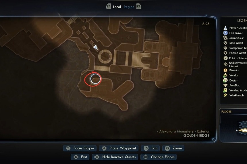 Non raggiungerai questo finché non avrai avanzato la storia di Golden Ridge abbastanza da affrontare Victor Clemens. Dopo aver preso l’ascensore fino al Monastero e aver attraversato l’area, raggiungerai un ampio cortile con campane.