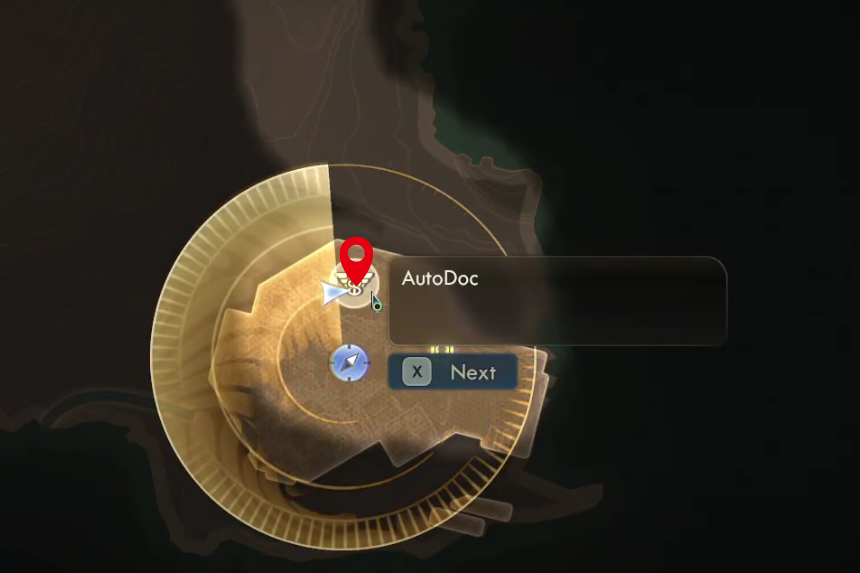 Nel cortile, guarda a nord-ovest per un grande edificio con un’insegna luminosa, vicino all’infermeria dell’ARC. Fuori da quell’edificio vedrai un robot rotto sotto un lampione, accanto a una porta blu. C’è una scatola arancione accanto al robot; salitelo per raggiungere il tetto. Lassù troverai le parti di ricambio Automech di cui Hogarth ha bisogno.