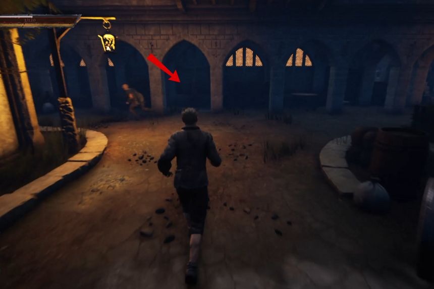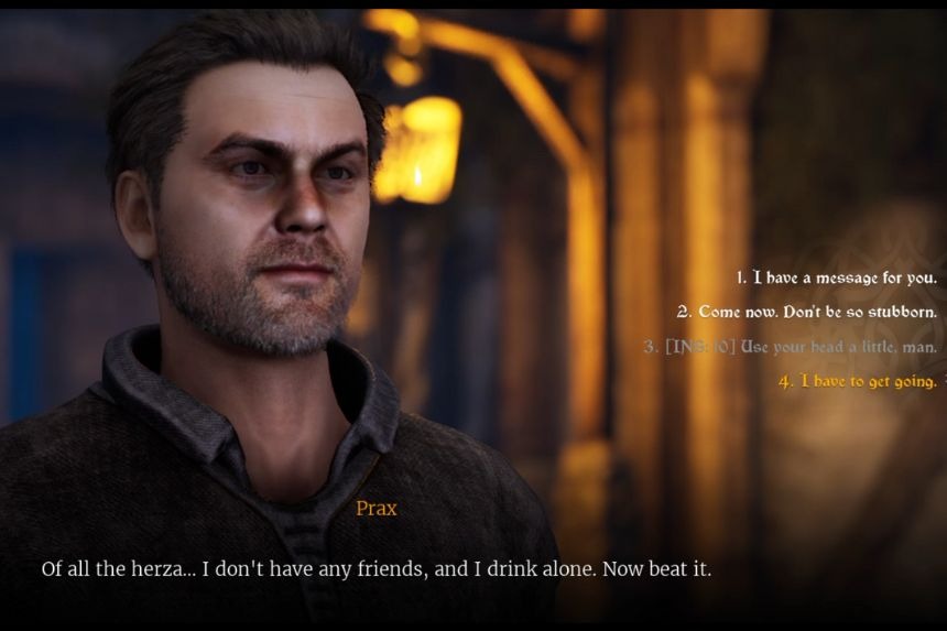 Una volta dentro, vai all’ingresso principale per trovare Prax seduto tra due colonne di pietra, che beve da solo. Convincilo a incontrare Augustus. Pagalo con oro o usa Intuizione livello 10 per convincerlo. Se usi l’oro, perderai denaro ed esperienza. Ma se usi Insight livello 10, risparmierai denaro e otterrai 3 volte i punti esperienza. Dopo aver convinto Prax, scortalo alla casa dei Mercenari.