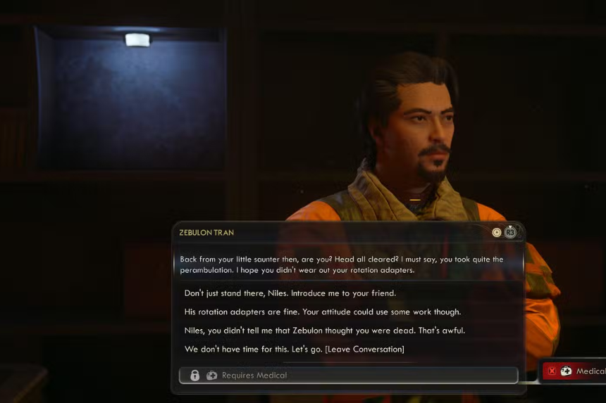 Nessun gioco Outer Worlds è completo senza un paio di compagni memorabili e The Outer Worlds 2 te ne offre moltissimi. Niles Abara, il tuo compagno iniziale e colui che ti salva dopo i tuoi dieci anni di assenza, ha più bagaglio emotivo di quanto sia disposto ad ammettere. La sua missione iniziale, Pressing Cares, approfondisce quel retroscena e ti permette di aiutarlo ad affrontarlo a testa alta.