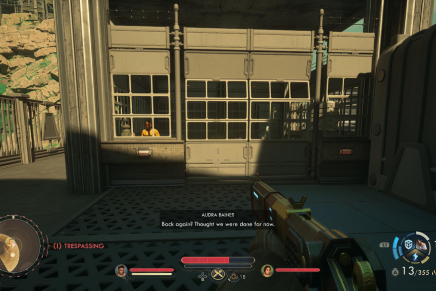 Dirigiti verso il retro della piattaforma per individuare la cella di detenzione dei sovversivi. Il posto è stranamente silenzioso, ma quando ti avvicini alla cella, vedrai che solo un membro, Audra, è riuscito a passare.