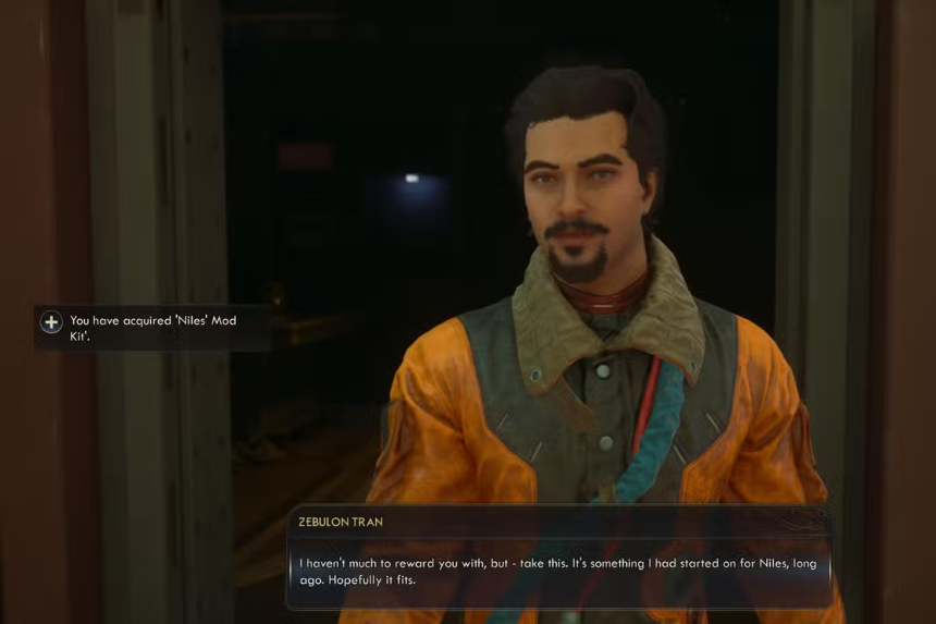 Zeb è sconvolto ma accetta che Audra e gli altri non siano morti invano: sono riusciti a riportare indietro il codice. Detto questo, fa pace con Niles e gli dà un vecchio Mod Kit che aveva tenuto per lui anni fa.