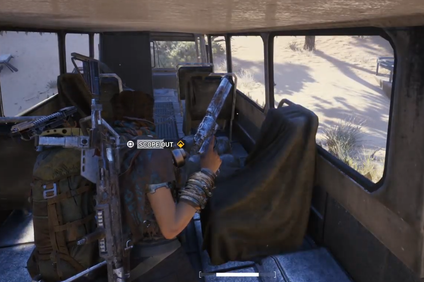 Qui, gli autobus rotti sono sparsi per terra. Avvicinandoti, uno di essi verrà evidenziato. Entra, quindi attiva l’azione per completare la scansione.