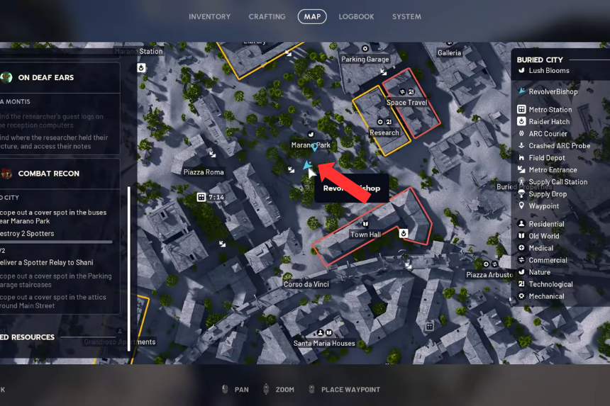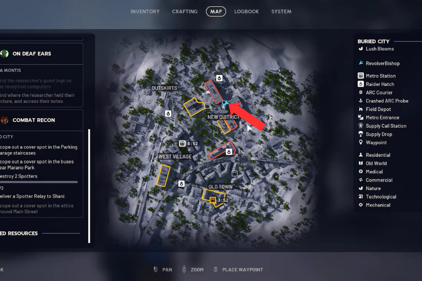 Nella Città Sepolta, il Combat Recon si estende in molti angoli della mappa. Colpire ogni punto contrassegnato è la cosa più importante: esplorarli cancella parte del compito. Le unità di ricognizione devono essere abbattute, una dopo l’altra. Una volta che li avrete eliminati, tornate verso Shani. Consegnandole l’oggetto recuperato si conclude tutto.