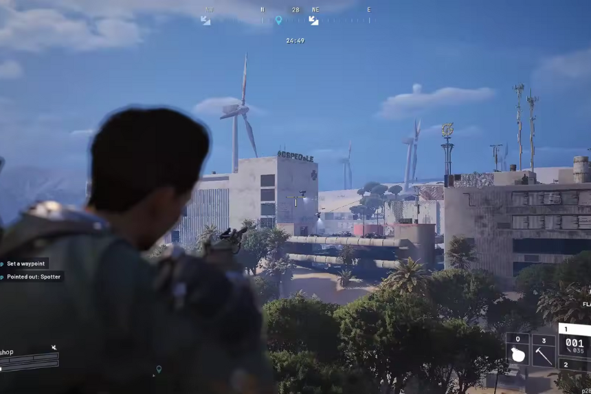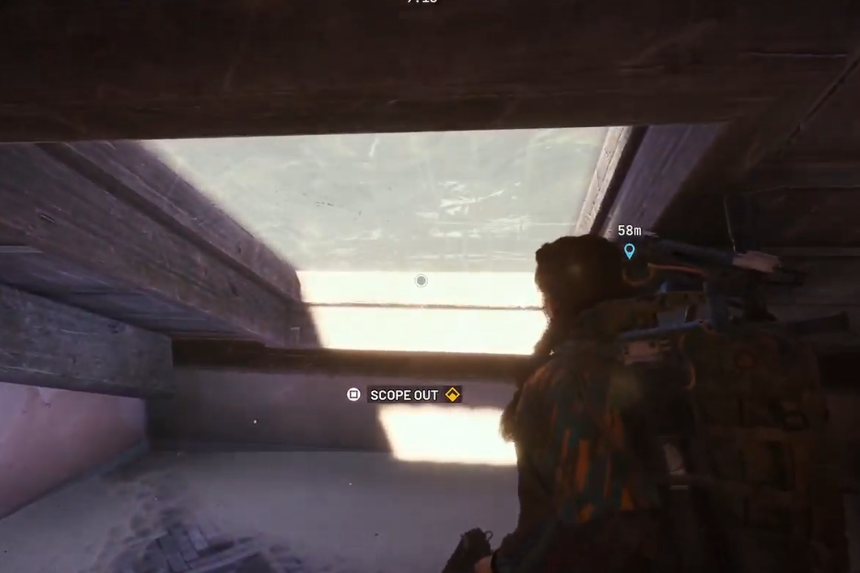 Inizia dalla struttura contrassegnata, entra dal piano inferiore. All’interno, individua la zipline che porta verso l’alto verso l’area del tetto. Quando arriverai in cima, il punto di osservazione sarà proprio lì. Toccalo per completare l’attività di vedetta finale.