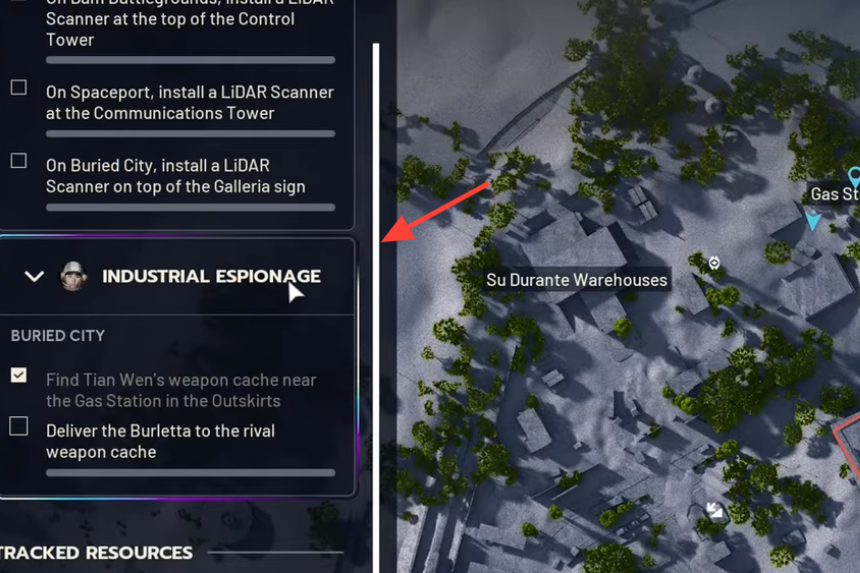L’obiettivo della missione è trovare la scorta nascosta di armi per Tian Wen che è nascosta da qualche parte nella zona industriale. Una volta che sei nell’area corretta, cerca gli indicatori evidenziati in giallo.