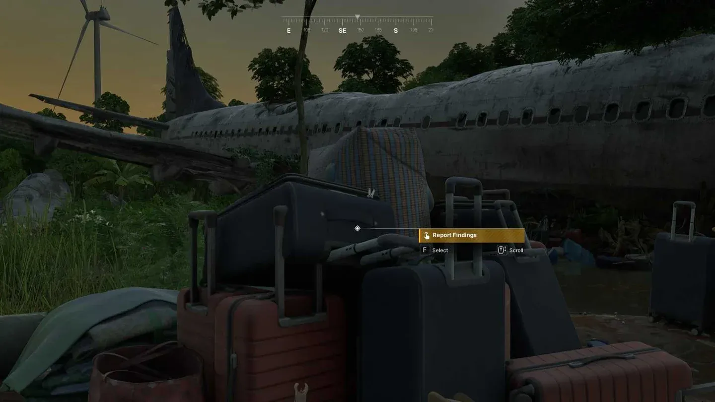 Vicino alla parte anteriore destra dell’aereo, ispeziona la pila di valigie per registrare la tua valutazione per Lab Rat. Il sito è stato ripulito dagli spazzini. Quindi gira intorno al muso sul lato sinistro dell’aereo e ispeziona uno dei corpi a terra per segnalare lo stato del passeggero. Entrambe sono interazioni rapide una volta che sai dove cercare.