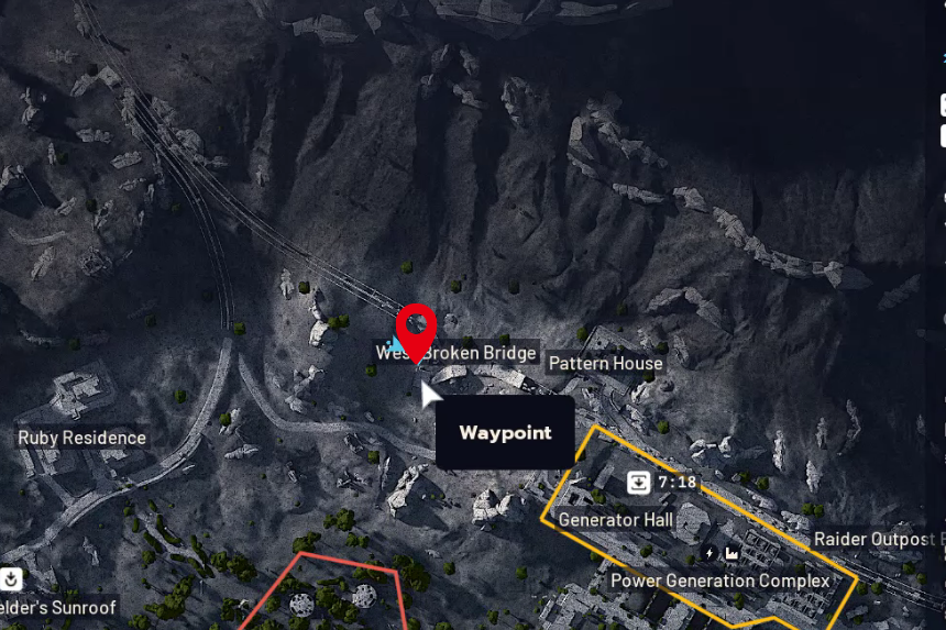 Nella missione Echoes of Victory Ridge, il tuo obiettivo principale è raggiungere Victory Ridge e recuperare i piani di battaglia nascosti sotto l’autostrada distrutta. Quando arrivi al campo di battaglia della diga, dirigiti verso il ponte rotto ovest, che si trova sul bordo settentrionale del lato occidentale del complesso di produzione di energia.
