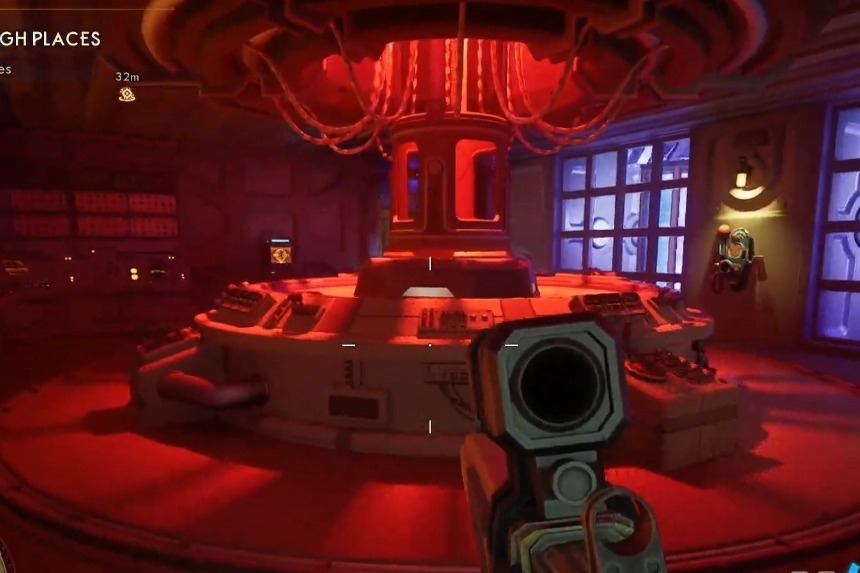 Poi arriva una camera profondamente illuminata di cremisi piena di ronzii, tubi e pericoli. C’è una scheda Siri Xie Pitchball qui e un registro del terminale che vale la pena leggere se hai l’abilità.