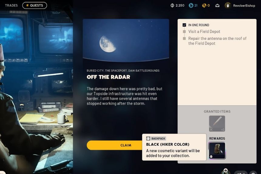 Una volta completate le riparazioni, dirigiti all’ascensore di estrazione piĂ¹ vicino per uscire in sicurezza. Se sei abbastanza fortunato da sopravvivere, la missione sarĂ completata. Tuttavia, se vieni ucciso dopo le riparazioni, dovrai ripetere la missione durante un raid diverso. Dopo aver completato la missione “Off the Radar” in ARC Raiders, riceverai una ricompensa da Shani, un cosmetico per zaino in stile escursionista nero.