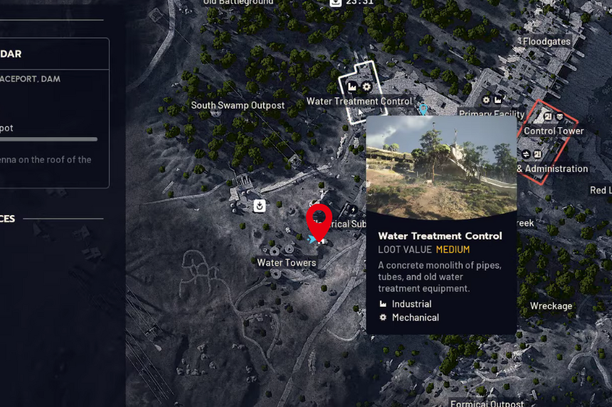 Innanzitutto, dovrai individuare un deposito sul campo. Questi tendono a trovarsi vicino all’area della sottostazione elettrica delle torri idriche o vicino al complesso idroponico, quindi vai da quella parte. Quando vedi dove vuoi essere, trova un edificio con una grande antenna in cima che è la tua destinazione. Prima di andare al lavoro, sali sulla roulotte vicina; potrebbe esserci del bel bottino all’interno.