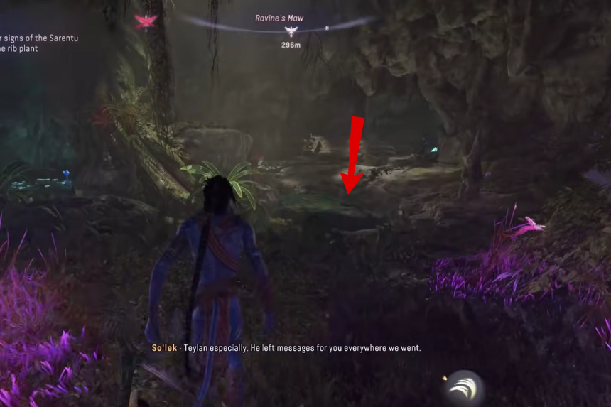 Vola verso la grotta. Una volta arrivato lì, entra nella grotta. Ora devi cercare nella grotta i segni di Sarentu. Mentre ti muovi ulteriormente all’interno della grotta, scoprirai che il percorso è bloccato dalla pianta delle costole. Muoviti indietro e troverai un corpo idrico. Immergiti nel corpo idrico ed entra nei tunnel sotterranei.
