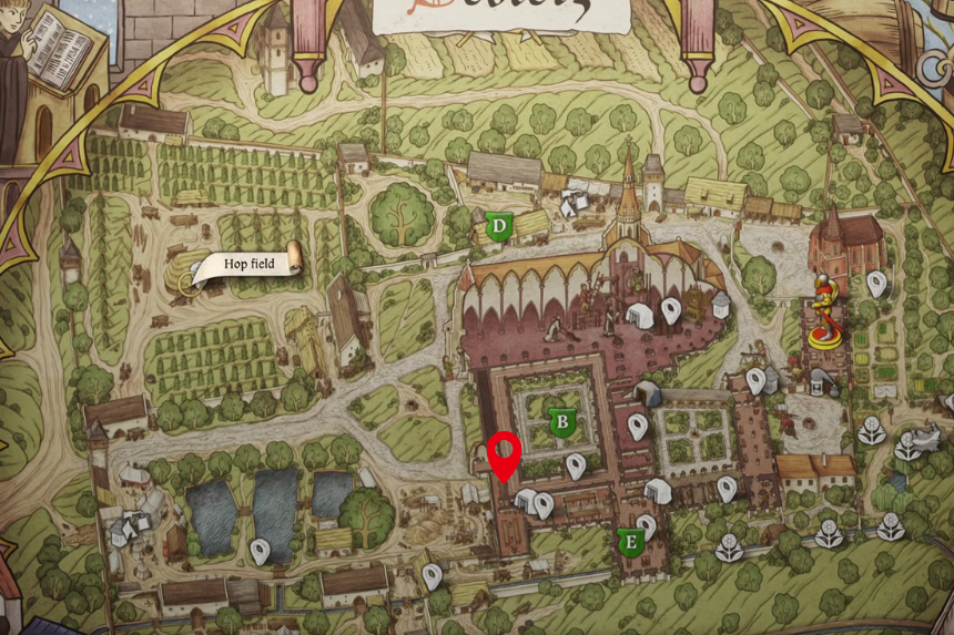Dirigiti al gruppo di edifici a ovest del monastero. Il tuo obiettivo è entrare nel fienile, ma la porta è chiusa con un lucchetto duro, quindi dovrai trovare un altro modo per entrare. Il metodo più semplice è borseggiare la guardia vicina e prendergli la chiave. Una volta aperta la porta ed entrato, scoprirai due corpi. Controlla tutto ciò che puoi e passa attraverso tutte le possibili interazioni. Dopodiché torna da Albich nell’infermeria e parla con lui. Assicurati di esaminare tutte le opzioni di dialogo per condividere tutto ciò che hai trovato.