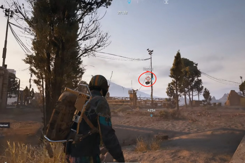 I calabroni sono uno dei droni più facili da trovare perché possono essere individuati in una varietà di luoghi sulla mappa e volare in aria. Una posizione garantita per gli Hornets è intorno ai campi di battaglia della diga. Per identificare rapidamente gli Hornet, utilizza la funzione ping per visualizzare il nome del drone sullo schermo. Questo ti aiuterà a tenere sotto controllo gli obiettivi che stai distruggendo.