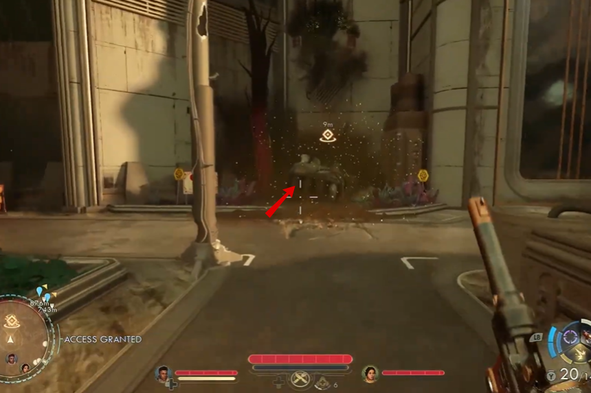Per entrare nel Centro riparazioni Automech, avrai prima bisogno di un pass di accesso. Puoi trovarlo presso il Ministero della Precisione, che si trova a nord-ovest di Fairfield. Quando arriverai, noterai che l’area è sotto attacco da parte dei raptidon e il cancello principale è spalancato senza guardie intorno. Entra e muoviti verso l’edificio principale.