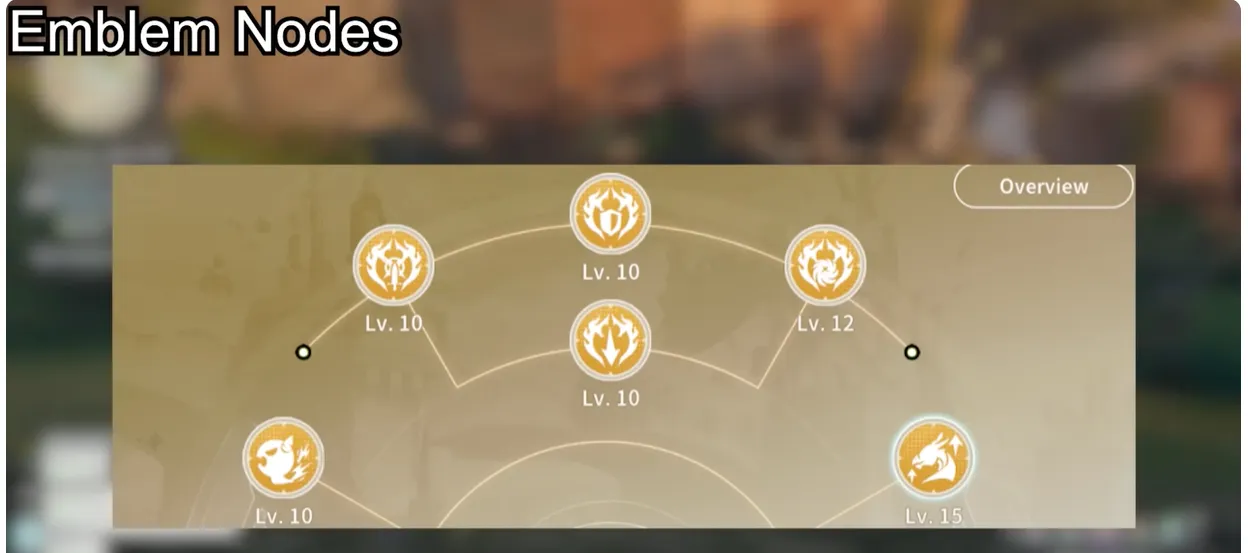 Gli emblemi hanno due parti da aggiornare: Emblem Nodes e Emblem Core. L’aggiornamento dei tuoi emblemi richiede l’aumento di livello di entrambe le parti.