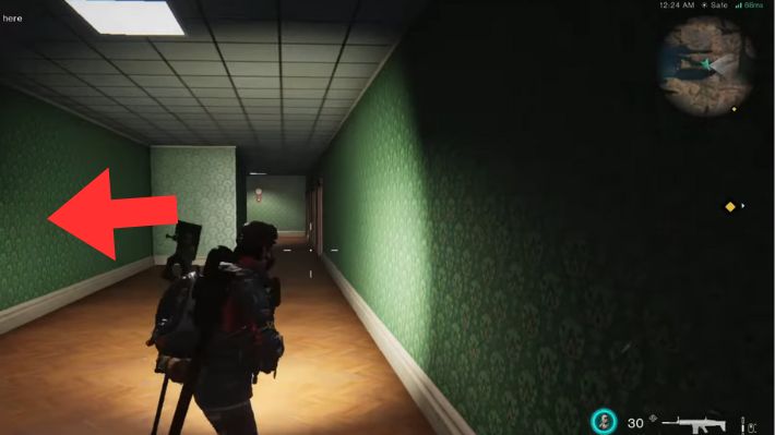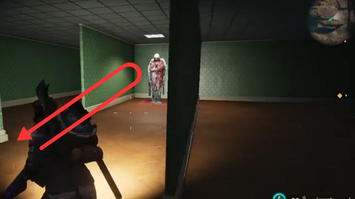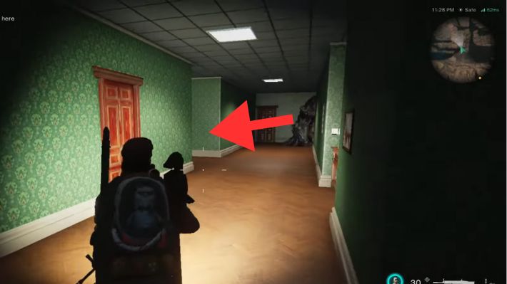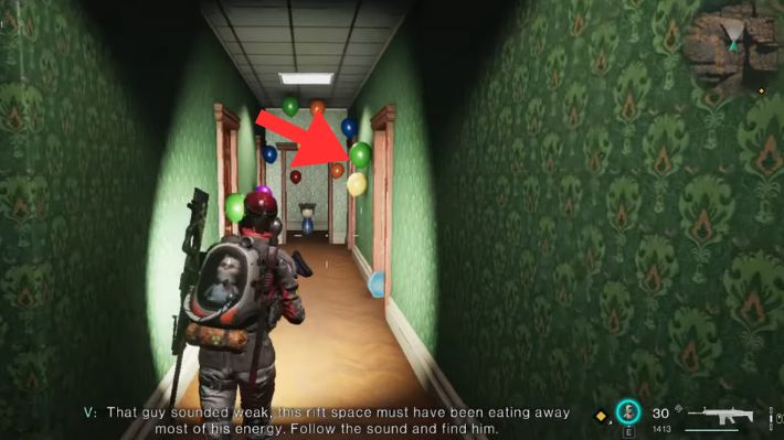 Attraversate la porta sul lato nord. C’è solo una porta aperta qui. Attraversa la porta e abbraccia il muro con la parola Fuga sopra, poi vai a destra verso il corridoio con i palloncini e la bambola inquietante alla fine. Attraversa la porta sul lato destro della bambola inquietante (2a porta a destra), quindi esci dalla stanza attraverso l’altra porta a sinistra. Gira subito a destra e sentirai un colpo di tosse nelle vicinanze. Alla tua sinistra ci sarà una stanza piena di graffiti. Vai dritto da lì e troverai Klein nascosto dietro il muro