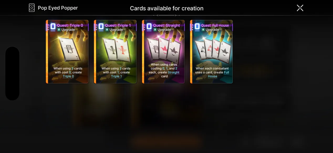 - Triplo 0: Usa 3 carte a costo 0 → Genera una carta attacco il cui danno scala con il numero di carte attacco utilizzate in questo turno.