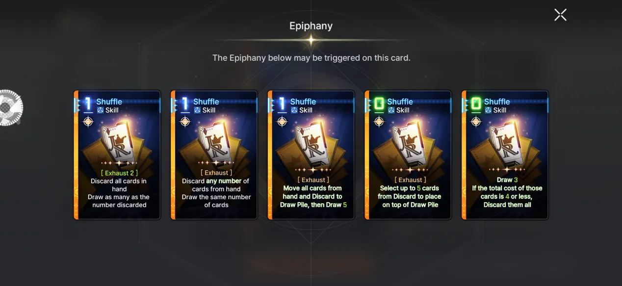 - Selezione dell’Epifania: Evita gli effetti dell’Epifania instabili (ad esempio, cure fisse basate sulle carte Missione). Dai priorità alla riduzione dei costi e agli effetti legati alla pesca delle carte.