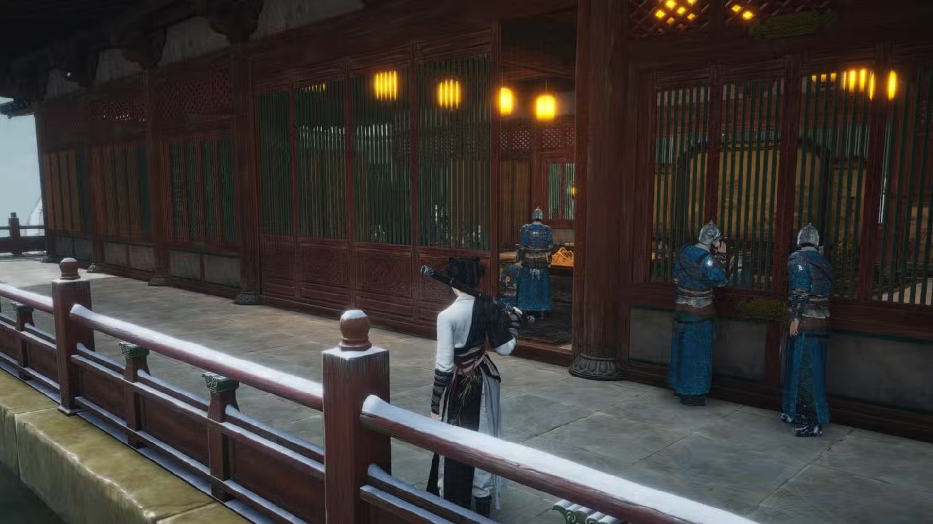L’Apprensione della Corte segue immediatamente dopo. Rimani sulla stessa strada e rimani vicino a una porta vicina per origliare due soldati dell’esercito Guiyi che hanno una conversazione privata.