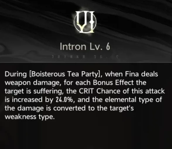 ·Efficienza abilità (principale): questa è la statistica più importante di Fina. Riduce direttamente il costo in Sanità mentale del suo Boisterous Tea Party, aumentandone drasticamente i tempi di attività e garantendo alla tua squadra un accesso quasi permanente ai suoi potenti buff.