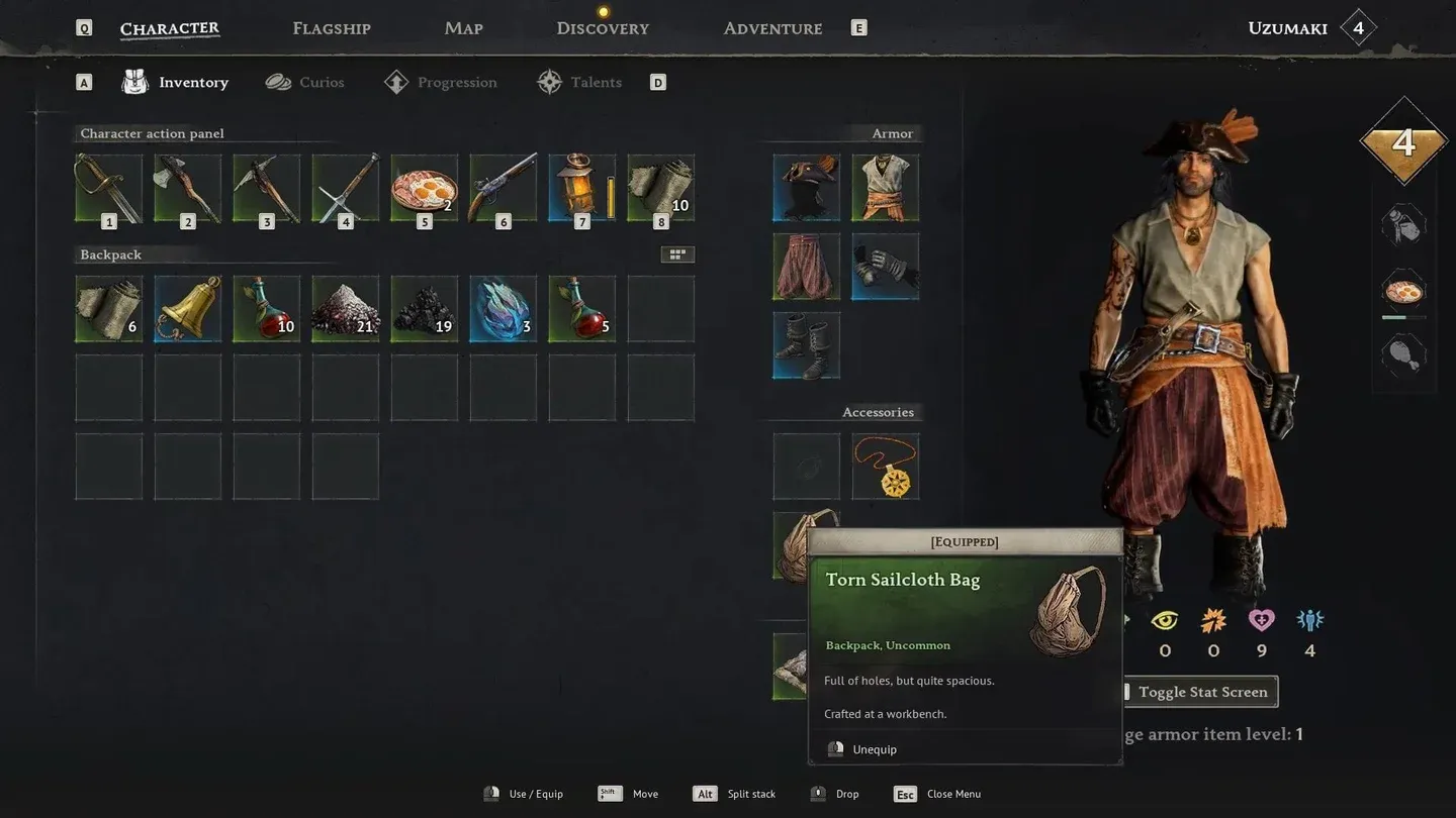 L’espansione dell’inventario in Windrose funziona tramite borse equipaggiabili. Li inserisci nella sezione Accessori dell’inventario del tuo personaggio e gli slot extra sono attivi finché la borsa è equipaggiata. Rimuovi la borsa e gli slot scompariranno, quindi non toglierla accidentalmente durante il trasporto.