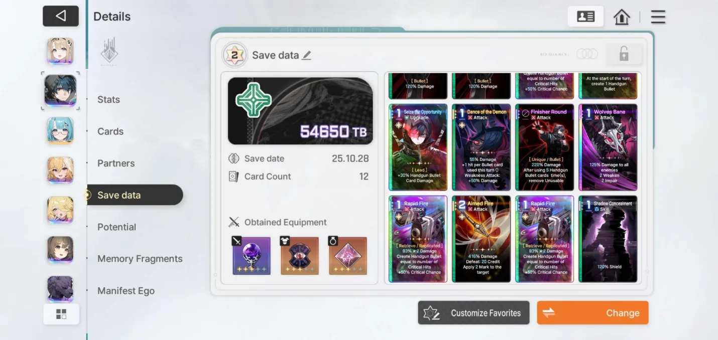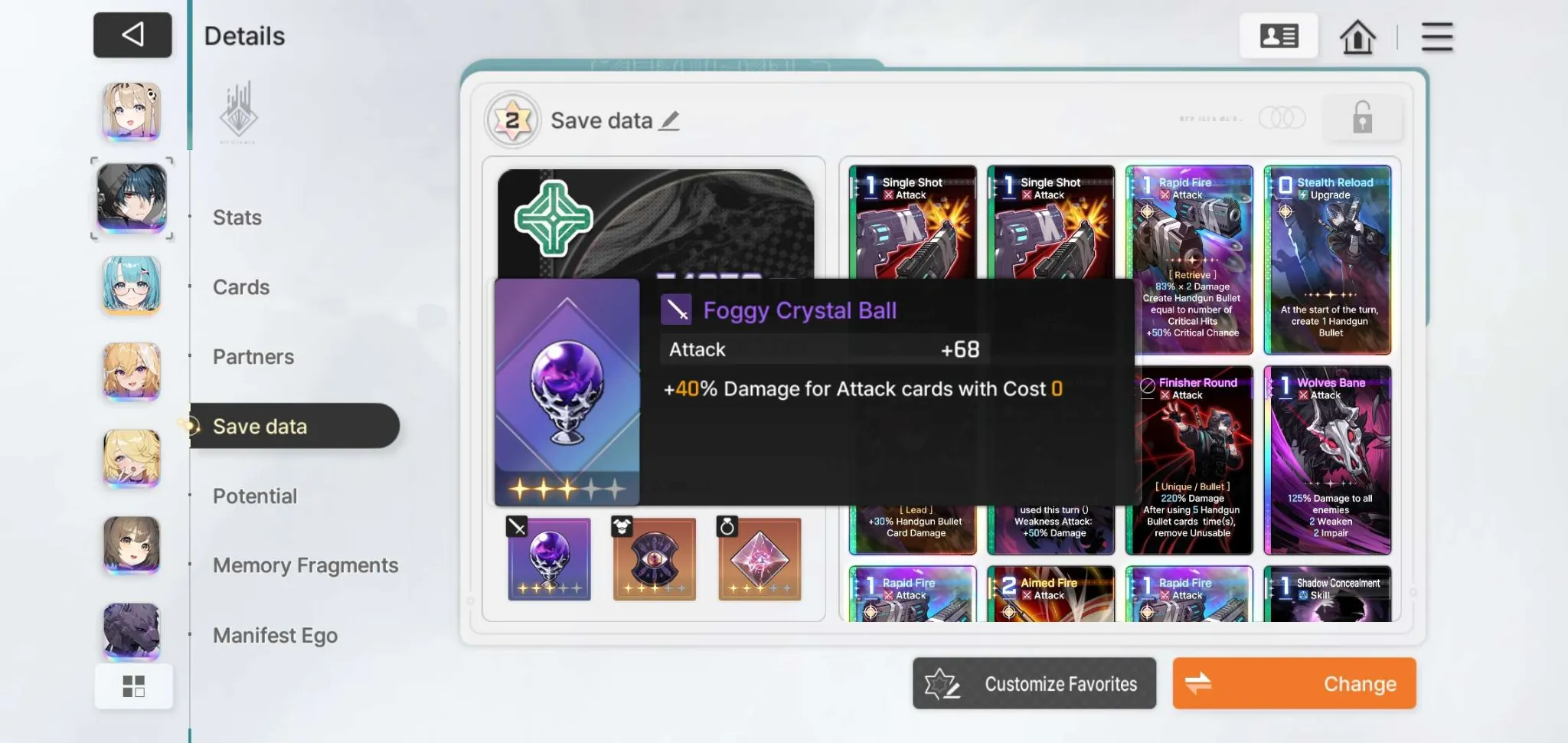 Per alcuni personaggi, in particolare quelli di supporto, avere un equipaggiamento forte è meglio che concentrarsi su un mazzo pieno di carte di alto livello, soprattutto perché molte carte di supporto forti hanno in primo luogo un basso valore di TB.