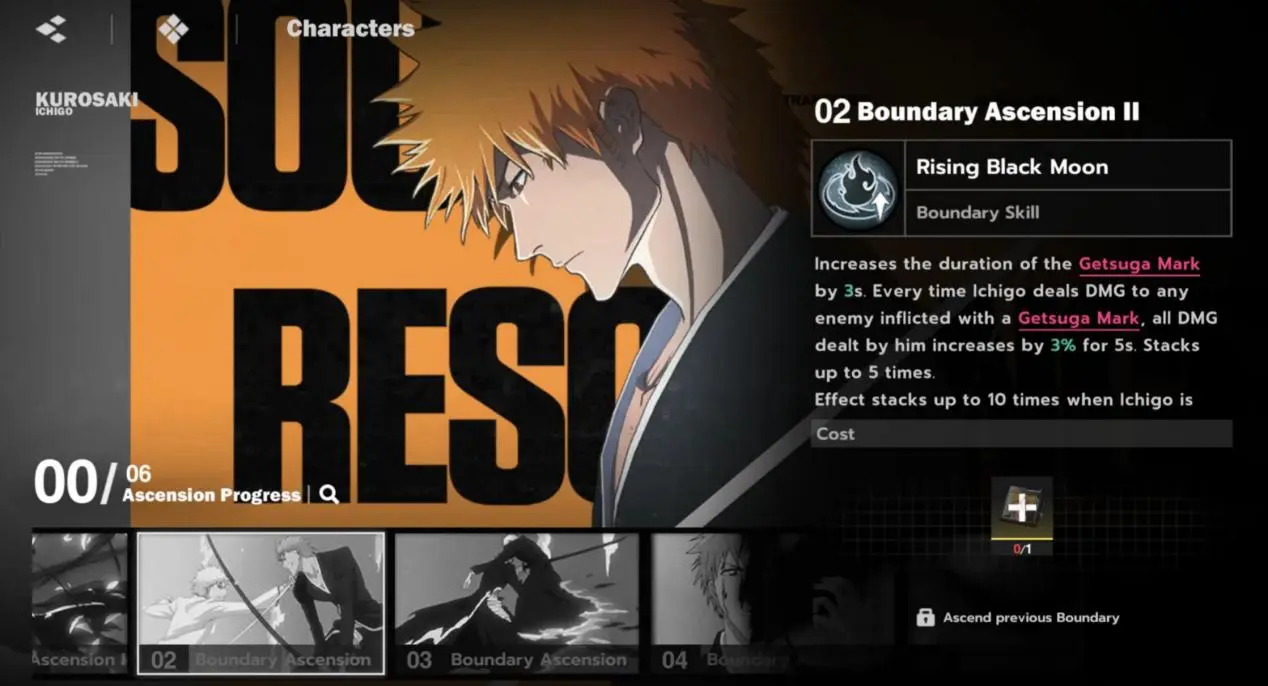 ·Confine 2 (AscensioneⅡ): Eccellente. Estende la durata di Getsuga Mark e aggiunge un potenziamento al danno cumulativo quando si attaccano i nemici marchiati.