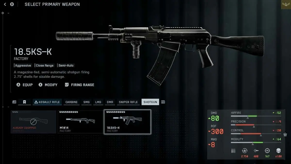 Il 18.5KS-K si guadagna la corona di miglior fucile REDSEC grazie alla sua combinazione di danni, cadenza di fuoco e manovrabilità. Sebbene l’M87A1 infligga danni grezzi superiori, la natura indulgente del semiautomatico e i rapidi colpi successivi lo rendono più affidabile in vari scenari di combattimento.